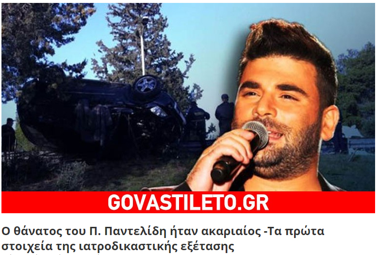 Μεγάλη ποσότητα αλκοόλ είχε καταναλώσει ο Παντελής Παντελίδης, βάσει των αποτελεσμάτων από την αιματολογική και τοξικολογική εξέταση που αναμένεται να διαβιβαστεί στις κεντρικές υπηρεσίες της Τροχαίας.