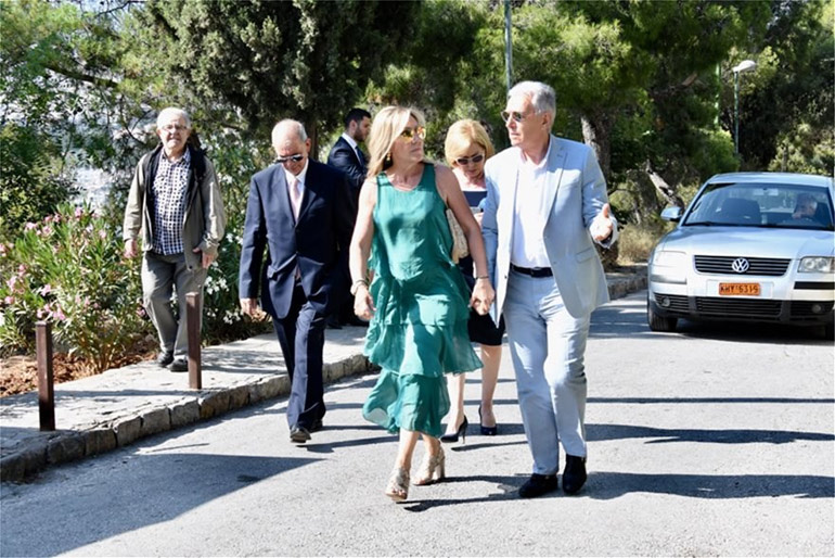 O Βασίλης Κικίλιας με τον κουμπάρο του Ηλία Καντζούρη έφτασαν στην εκκλησία λίγο πριν τις 6, ενώ η νύφη έφτασε στην ώρα της, χωρίς να στήσει τον γαμπρό.
