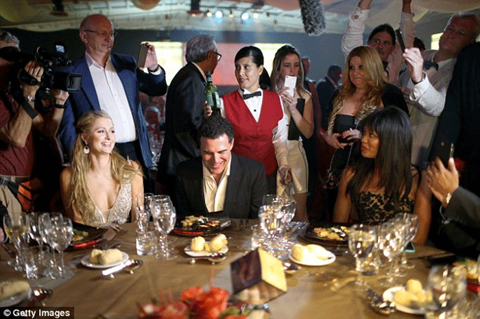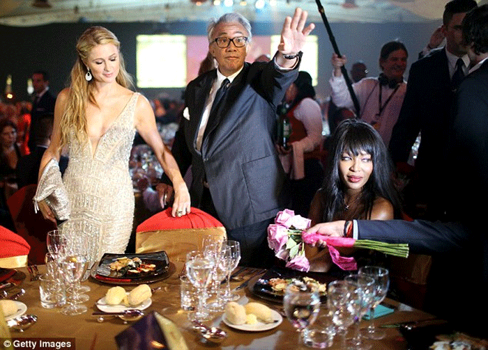 Το δίδυμο γλέντησε μαζί με τη Naomi Campbell, η οποία καθόταν δίπλα στην Paris κατά τη διάρκεια του δείπνου.