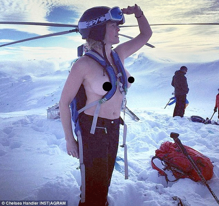 Αυτή τη φορά, η Tσέλσι Χάντλερ πήγε για σκι και πέταξε τη μπλούζα της,διαμαρτυρόμενη με τον δικό της μοναδικό τρόπο για τη λογοκρισία του Instagram.