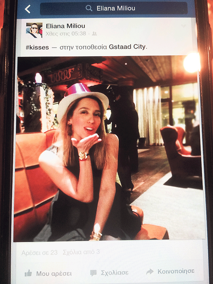 Μέσα σε αυτούς και η κόρη του Μηλιού που ταράζοντας τους επιχειρηµατικούς και πολιτικούς κύκλους, µε αµφίσηµη διάθεση σχολίαζε την παραµονή Πρωτοχρονιάς όλους εκείνους που κάνουν διακοπές στο Γκστάαντ. Η ορχήστρα διασκεδάζει τους Έλληνες πλοιοκτήτες ενώ ο Ηλίας Ψινάκης χαµογελά επιδοκιµαστικά).