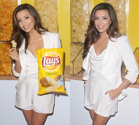 Ο φωτογραφικός φακός «απαθανάτισε» την Eva την ώρα που πόζαρε με χάρη, τρώγοντας πατατάκια, έχοντας λάβει προηγουμένως μια «παχυλή» αμοιβή από γνωστή εταιρεία παρασκευής τροφίμων προκειμένου να διαφημίσει το εν λόγω προϊόν.