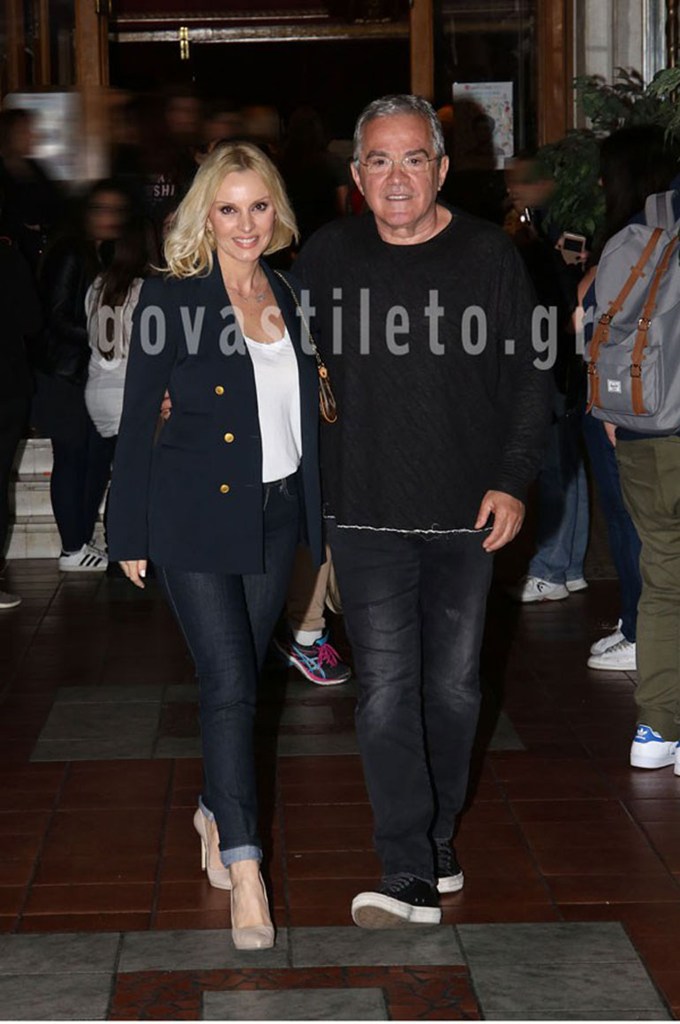 Το ζευγάρι σε μία από τις σπάνιες βραδινές του εξόδους, άφησε για λίγο την κόρη τους Ηλέκτρα στο σπίτι και πήγε στο θέατρο Ακροπόλ. Ο φωτογραφικός φακός του govastileto.gr ήταν εκεί και απαθανάτισε την τραγουδίστρια και τον σύζυγό της, οι οποίοι πόζαραν στο τέλος της παράστασης με τη Μπέττυ Μαγγίρα, την Μαριέλλα Σαββίδου, την Demy και τη Δέσποινα Βανδή.