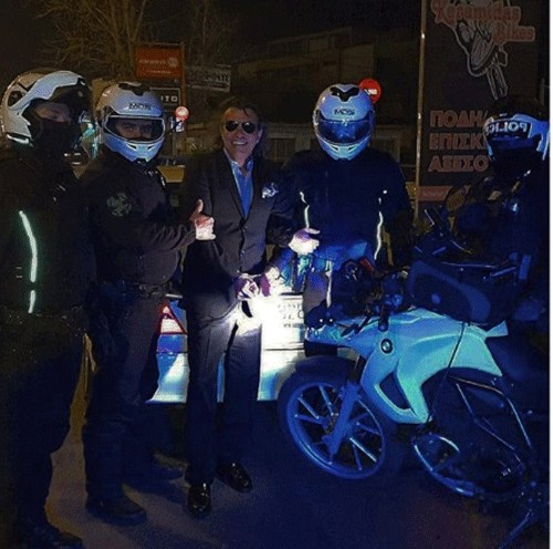 O ίδιος, περιτριγυρισμένος από αστυνομικούς της ομάδας ΔΙΑΣ, πόζαρε χαμογελαστός στον φακό, ενώ στη φωτογραφία που ανέβασε στο Instagram έγραψε χαρακτηριστικά: