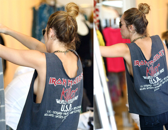 Η γνωστή τραγουδίστρια φρόντισε να δείξει τις… άγριες διαθέσεις της στη διάρκεια εξόδου της για ψώνια στα καταστήματα πόλης της Καλιφόρνια. Μπλούζα Iron Maiden χωρίς… σουτιέν από μέσα.