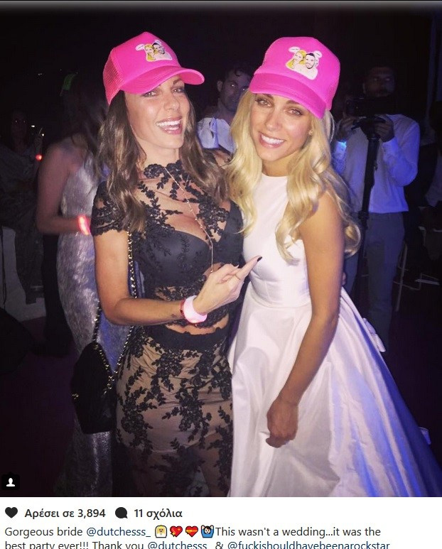 Ο λόγος για την Ελίνα Καντζά, η οποία ανέβασε στον λογαριασμό της στο instagram μια φωτογραφία με τη νύφη όπου και οι δύο φοράνε τα καπέλα που είχε φτιάξει οι νεόνυμφοι για όλους με τα πρόσωπά τους πάνω.