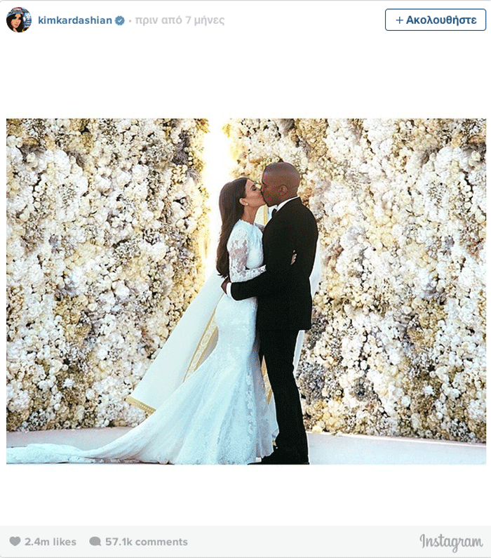 Η φωτογραφία του γάμου της Kim Kardashian και του Kanye West είναι λοιπόν το post με τα περισσότερα likes στο Instagram. Συγκεκριμένα 2,4 εκατ.