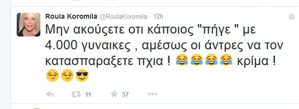 Ανάμεσα στους επικριτές του, το μοντέλο βρήκε και ένα επώνυμο πρόσωπο να τον στηρίξει και να πάρει το μέρος του. Και αυτό το πρόσωπο δεν είναι άλλο από τη Ρούλα Κορομηλά, που έκανε την εξής ανάρτηση στο twitter της.