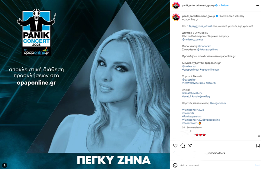 Opaponline.gr & Panik Concert πάνε μαζί! Αν θες κι εσύ να δεις τους μεγαλύτερους καλλιτέχνες από κοντά, κάνεις σύνδεση ή εγγραφή στον λογαριασμό σου στο opaponline.gr και διεκδικείς online δωρεάν διπλές προσκλήσεις για το Panik Concert.