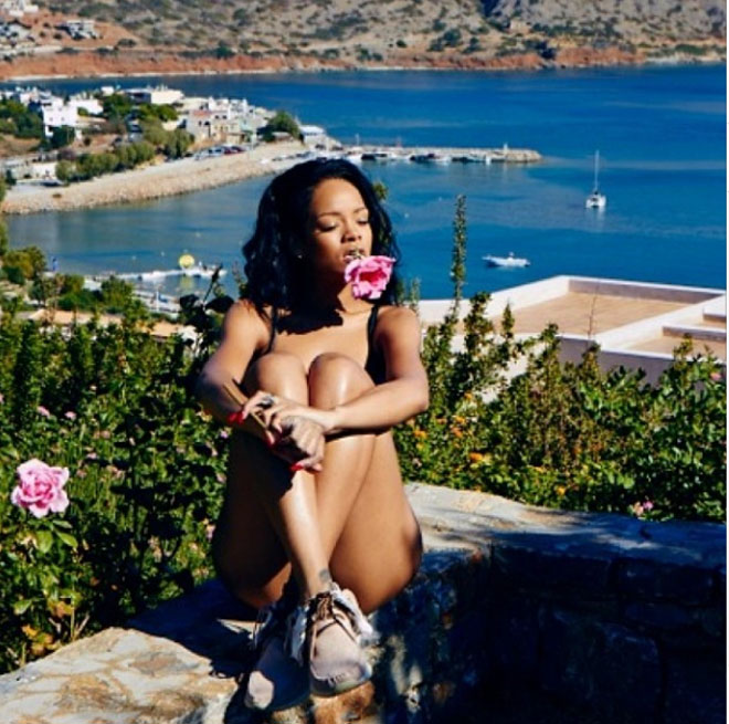 Από την πρώτη στιγμή που η Ριάνα πάτησε το πόδι της στην Ελλάδα και συγκεκριμένα στην Ελούντα όπου έμεινε και φωτογραφήθηκε για να προωθήσει τη νέα σειρά ρούχων της, άμεσα ανέβασε τις φωτογραφίες στο Instagram και στο Twitter και κυκλοφόρησαν σε όλο το διαδίκτυο με το χάσταγκ #Greece.