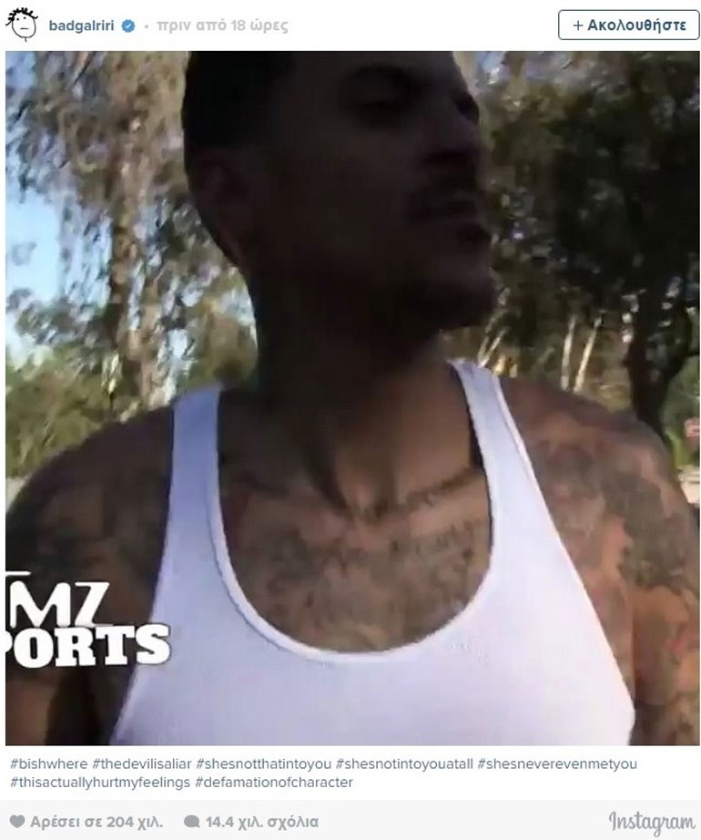 Η απάντηση της star ήρθε μέσω instagram και συγκεκριμένα μέσα από πολλά hashtags. «ψεύτης του κερατά, δεν σε γουστάρει καθόλου, δεν σε συνάντησε ποτέ, αυτό πλήγωσε τα αισθήματά μου, δυσφήμηση χαρακτήρα», ήταν οι χαρακτηρισμοί που συνόδευσαν τη φωτογραφία του αθλητή που δημοσίευσε η Riri.