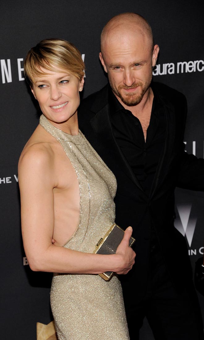 Την πρώτη της επίσημη εμφάνιση με τον αρραβωνιαστικό της, Μπεν Φόστερ  έκανε στο κόκκινο χαλί των Χρυσών Σφαιρών η Ρόμπιν Ράιτ και εντυπωσίασε με την εφαρμοστή και άκρως σέξι χρυσή Reem Acra τουαλέτα της.