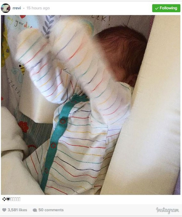 Η τρυφερή μανούλα αυτή τη φορά έβγαλε ένα από τα δύο μωράκια της, αλλά δεν έδειξε το πρόσωπό του. Το μωράκι έπαιζε στη κούνια του και η μαμά του απολάμβανε τη στιγμή!