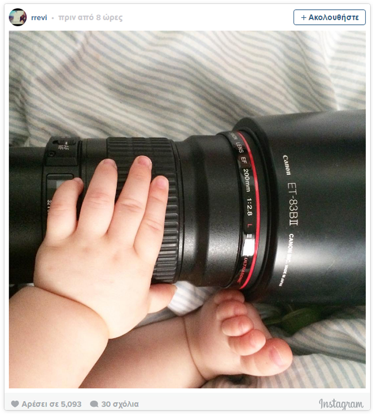Αυτήν τη φορά την τιμητική της είχε η κόρη της φωτογράφου, η οποία ακολουθεί τα επαγγελματικά της βήματα από… κούνια. Στην τελευταία φωτογραφία της μαμάς της η μικρούλας ποζάρει αγκαλιά με τη φωτογραφική της μηχανή και ξετρελαίνει τους πάντες.