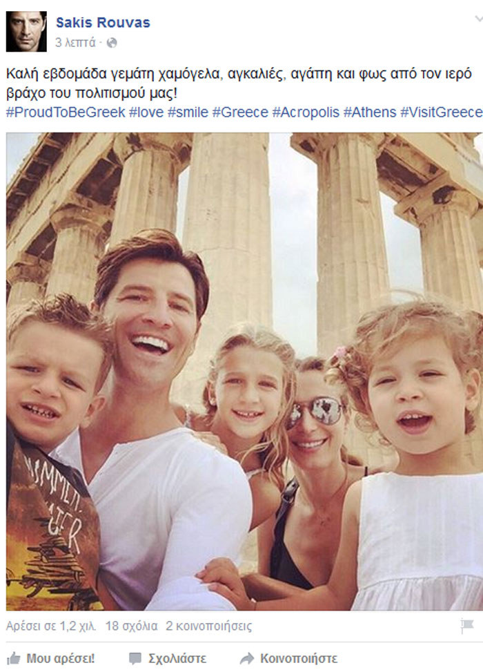 Ο κορυφαίος Έλληνας σταρ – λάτρης των social media- μοιράστηκε με τους διαδικτυακούς του φίλους στο facebook και σχολίασε: «Καλή εβδομάδα γεμάτη χαμόγελα, αγκαλιές, αγάπη και φως από τον ιερό βράχο του πολιτισμού μας!»
