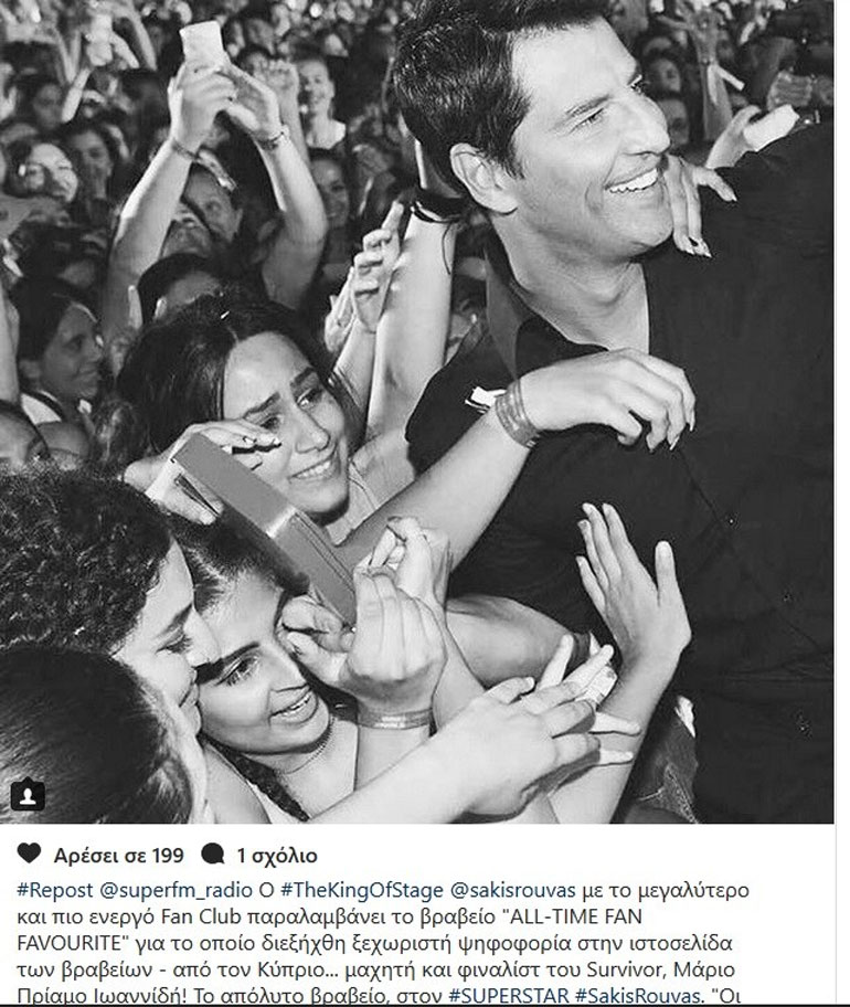 Ο Σάκης παρέλαβε το βραβείο ALL-TIME FAN FAVOURITE από τον μαχητή του Survivor Μάριο Πρίαμο Ιωαννίδη, ο οποίος έκανε στα βραβεία την πρώτη του δημόσια εμφάνιση μετά το ριάλιτι επιβίωσης!