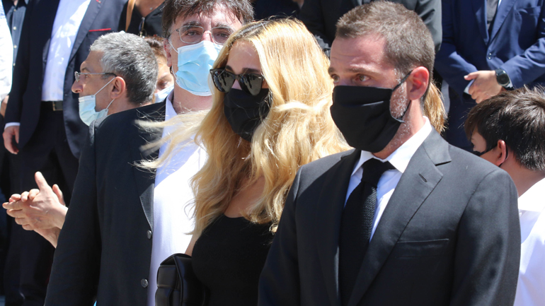 Φανερά συγκινημένη η παρουσιάστρια δεν μπορούσε να λείψει από το πλευρό του συζύγου της, επιχειρηματία Δημήτρη Θεοδωρίδη αυτή τη δύσκολη στιγμή που από την Μητρόπολη Αθηνών αποχαιρετούσε τον πατέρα του, ο οποίος υπήρξε εμβληματική προσωπικότητα του Ολυμπιακού.