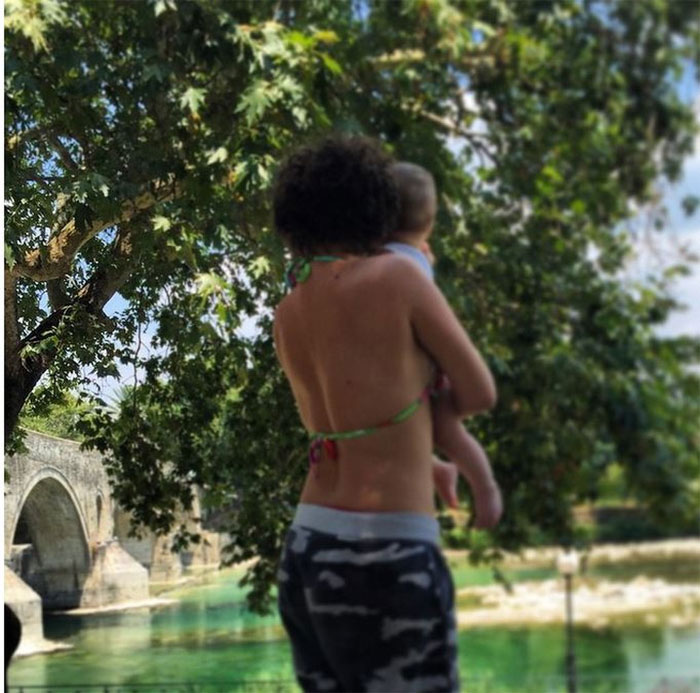 Η Σύλβια μέσα από τον λογαριασμό της στο instagram δημοσίευσε δύο πολύ όμορφα στιγμιότυπα με τον μπέμπη. Στην πρώτη μαμά και γιος έχουν πλάτη στο φακό και ποζάρουν στο ιστορικό γεφύρι της Άρτας, ενώ στη δεύτερη η ηθοποιός βρίσκεται στην παραλία απολαμβάνοντας το πρώτο της μπάνιο με το παιδί της.