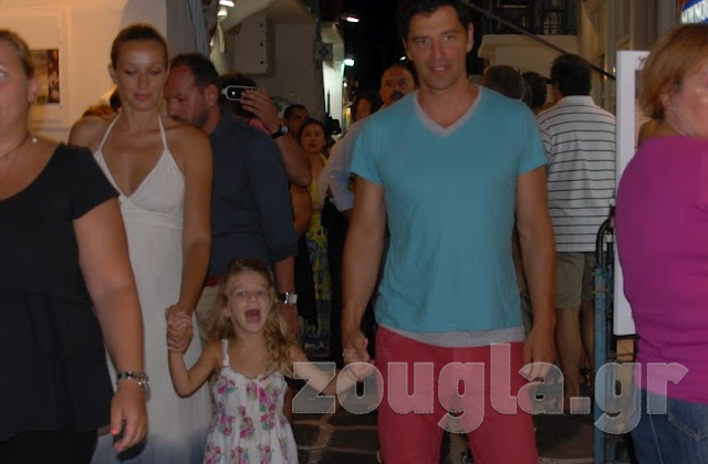 Ο φωτογραφικός φακός απαθανάτισε το γνωστό ζευγάρι μαζί με την κορούλα του Αναστασία στα γραφικά σοκάκια του νησιού.