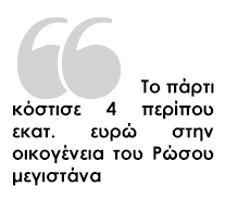 Οι υψηλοί προσκεκλημένοι από τον επιχειρηματικό -και όχι μόνο- κόσμο σίγουρα θα θυμούνται για πολλά χρόνια τις τριήμερες εκδηλώσεις που έγιναν για χάρη της κόρης του Ριμπολόβλεφ, η οποία έγινε 25 ετών.