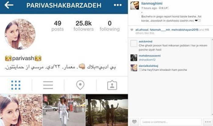 Όπως αποκαλύπτει ρεπορτάζ της εφημερίδας Guardian, όταν η Παριβάς Ακμπαρζαντέχ σκοτώθηκε, οι φίλοι της έφτιαξαν μία σελίδα στο Instagram.