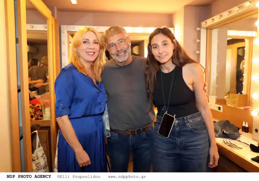 Αναλυτικότερα, η ηθοποιός είχε βρεθεί στο θέατρο μαζί με την Φωτεινή Αθερίδου για να παρακολουθήσουν τον Θοδωρή Αθερίδη στην πρεμιέρα της παράστασης «Σε βλέπω» στην οποία πρωταγωνιστεί αυτή τη σεζόν. Το ζευγάρι φωτογραφήθηκε στα παρασκήνια μαζί με την κόρη του ηθοποιού, όπως και με τη Βίκυ Βολιώτη και την Πέγκυ Τρικαλιώτη που επίσης πρωταγωνιστούν στο έργο.
