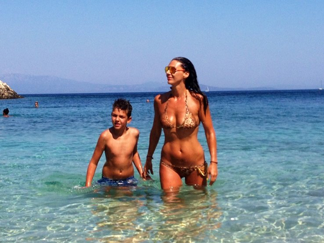 Αυτές τις μέρες απολαμβάνει τον ήλιο και τη θάλασσα με τους τρείς άντρες της, ενώ όσοι την βλέπουν, απολαμβάνουν τις τέλειες αναλογίες της!