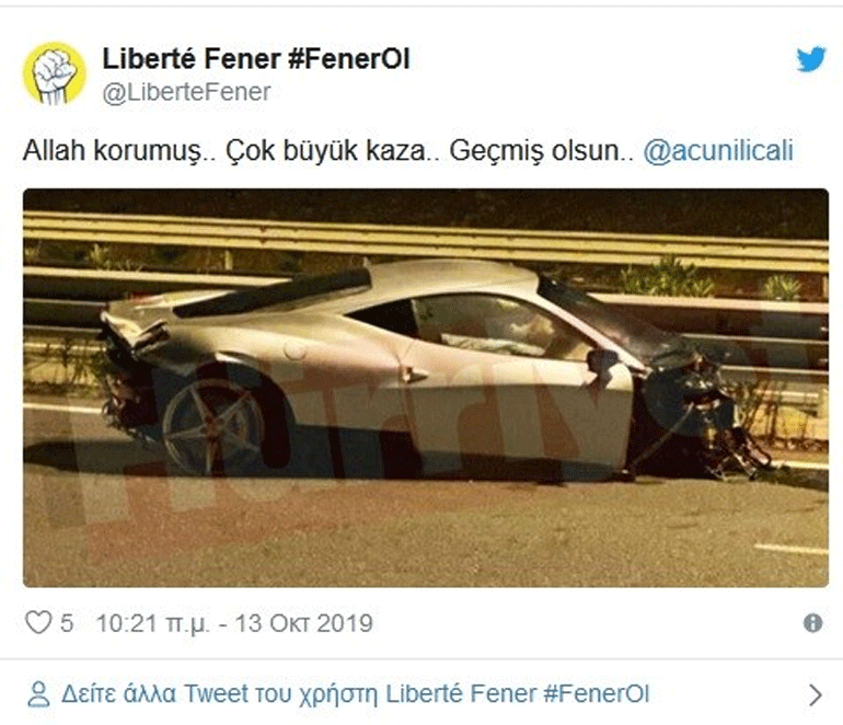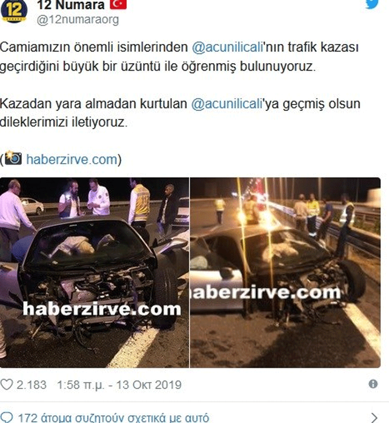 Λίγο μετά το τροχαίο, ο Acun Ilicali έκανε ανάρτηση στα social media, που ανέφερε: «Δυστυχώς, είχα ένα τροχαίο ατύχημα. Η κατάσταση της υγείας μου είναι πολύ καλή. Σας ευχαριστώ όλους για το ενδιαφέρον και την αγάπη σας».