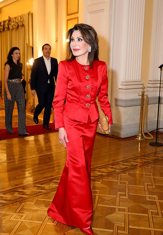 Ανάμεσά τους ήταν και η Γιάννα Αγγελοπούλου, η οποία τράβηξε πάνω της τα φωτογραφικά φλας με το total red outfit της. Επιλέγοντας ένα κόκκινο satin ταγέρ με σακάκι που έχει εντυπωσιακά κουμπιά, maxi φούστα και γόβες στο ίδιο χρώμα, η κα Αγγελοπούλου ήταν αναμφίβολα μέσα στις πιο καλοντυμένες κυρίες της βραδιάς.