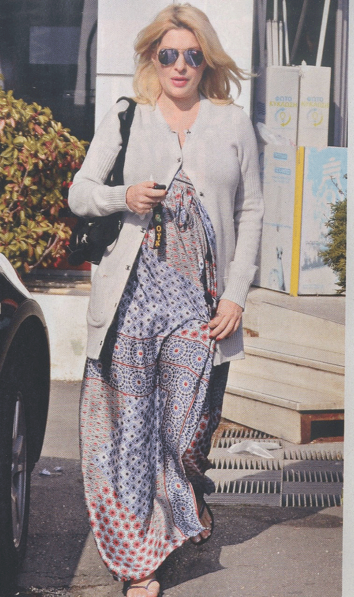 Αν και είναι ένα βήμα πριν τον ερχομό του τέταρτου παιδιού της, η Ελένη Μενεγάκη δεν το βάζει κάτω. Ο φακός του ΟΚ την συνέλαβε για ψώνια σε σουπερμάρκετ της Νέας Ερυθραίας,το προηγούμενο Σαββάτο, όπου πήγε μόνη της, οδηγώντας το Volvo αυτοκίνητό της. Χαμογελαστή και ευδιάθετη, πάντα στιλάτη(αν και με σαγιονάρες) έχει μπει στην τελική ευθεία της γέννας.