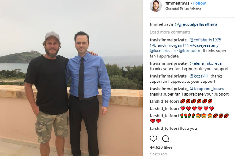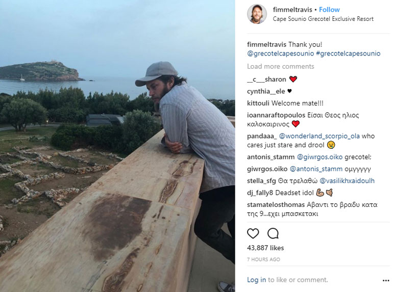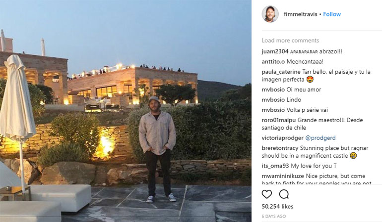 Ο ηθοποιός που υποδύεται στη σειρά τον Ράγκναρ Λόθμπροκ ανακοίνωσε την επίσκεψή του στο Σούνιο ανεβάζοντας σχετική φωτογραφία στον προσωπικό του λογαριασμό στο Instagram.