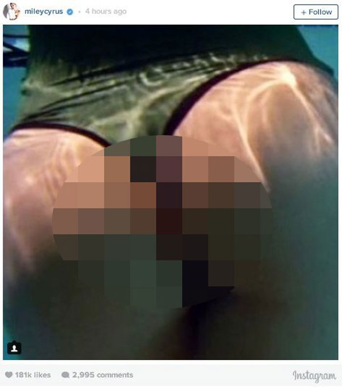 Μάλιστα η φωτογραφία δεν πέρασε ασχολίαστη και από την Miley Cyrus, η οποία την πόσταρε και εκείνη με την σειρά της συγκρίνοντας τα οπίσθια του Justin με εκείνα της Rihanna στο βίντεο κλιπ «B**ch Better Have My Money».