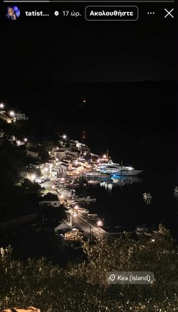 Πλέον, μακριά από τα τηλεοπτικά φώτα και την πίεση της καθημερινότητας, η Τατιάνα Στεφανίδου βρίσκεται στην αγαπημένη της Τζιά, ένα νησί που επισκέπτεται συχνά, συνήθως μαζί με τον σύζυγό της, Νίκο Ευαγγελάτο, για μικρές αποδράσεις ηρεμίας.