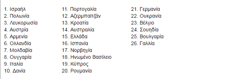 Αναλυτικά, η σειρά εμφάνισης των 26 χωρών στον τελικό: