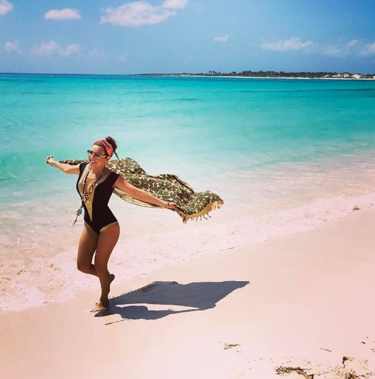Η Μεξικανή τραγουδίστρια και ηθοποιός Thalia, η οποία έγινε γνωστή στην Ελλάδα από τη σειρά «Μαρία της γειτονιάς», αγόρασε ένα εντυπωσιακό μαγιό, αρκετά σέξι, και πόζαρε στον φακό για να το δείξει στους διαδικτυακούς της φίλους.