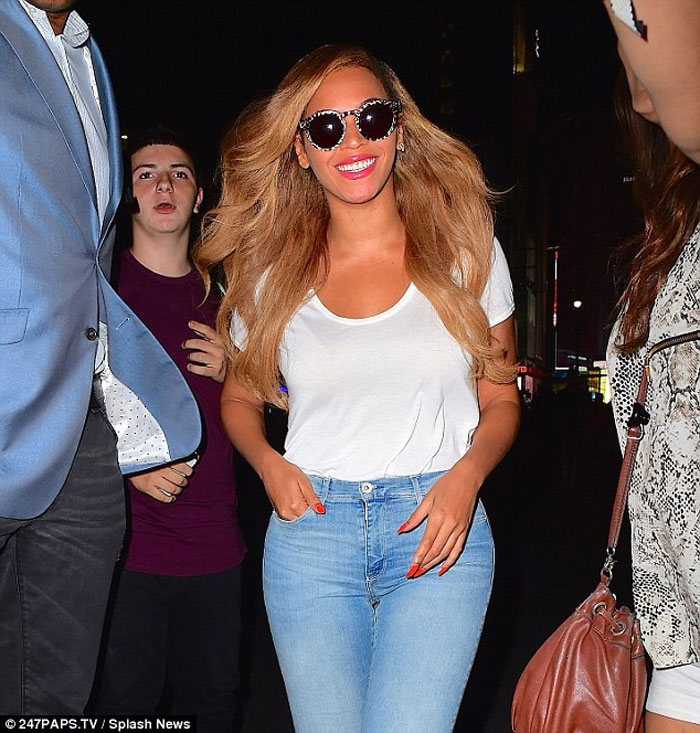 Η Beyonce τόνισε τις καμπύλες της με τον καλύτερο τρόπο, φόρεσε ένα στενό τζιν παντελόνι, ένα t-shirt, αθλητικά παπούτσια και μεγάλα γυαλιά ηλίου και τα φλας «πήραν φωτιά»!