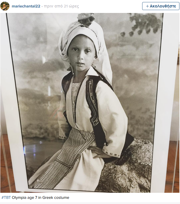 Εκεί μάλιστα, η Marie Chantal έπεσε πάνω σε μια φωτογραφία από τα παιδικά χρόνια της κόρης της Ολυμπίας και μέσα από τον λογαριασμό της στο instagram μας έδειξε την 7χρονη τότε Ολυμπία να ποζάρει στο φακό με παραδοσιακή ελληνική στολή.