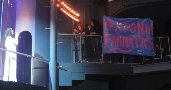 «Καλησπέρα! Καλώς ήρθατε στο μεγαλύτερο party της πόλης! Τι να πω σήμερα; Δεν φαίνεται πόσο χαρούμενη είμαι; Γιορτάζετε 4 χρόνια, γιορτάζω 40! Δεν είχατε γεννηθεί… Σήμερα έχουμε ένα ιδιαίτερο party… Το καλύτερο fan club του κόσμου, το fannatics είναι εδώ! Είμαι πολύ περήφανη, πολύ χαρούμενη… Θα ζήσουμε μεγαλεία σήμερα! Είμαστε έτοιμοι; Πάμε για μια βραδιά μαγική εδώ στο “Rex”!».