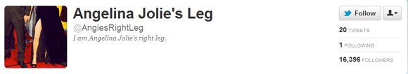 Από τη στιγμή εκείνη, το δεξί πόδι της Αντελίνας Τζολί απέκτησε και λογαριασμό στο Twitter (@AngiesRightLeg) και μέσα σε λίγες ώρες είχε αποκτήσει πάνω από 16.000 «φίλους».
