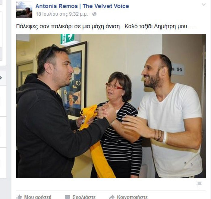«Πάλεψες σαν παλικάρι σε μια μάχη άνιση . Καλό ταξίδι Δημήτρη μου ….», έγραψε ο τραγουδιστής στα social media λίγη ώρα μετά τη είδηση του θανάτου του.