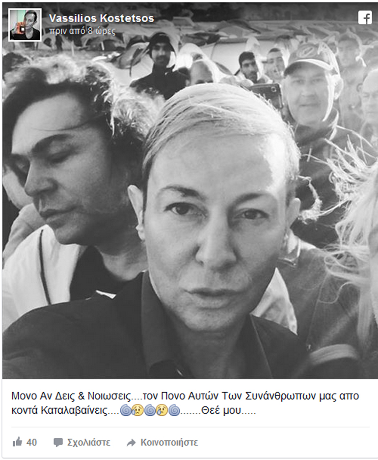 O Βασίλειος Κωστέτσος επιστρέφοντας από τα Σκόπια, όπου πραγματοποίησε μια λαμπερή επίδειξη μόδας για τη νέα του κολεξιόν ρούχων, πέρασε από την Ειδομένη και είδε τους πρόσφυγες που ζουν στην περιοχή.