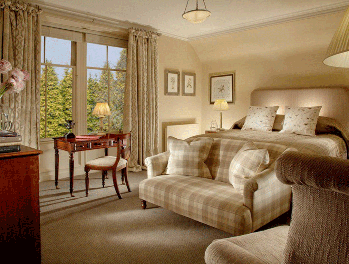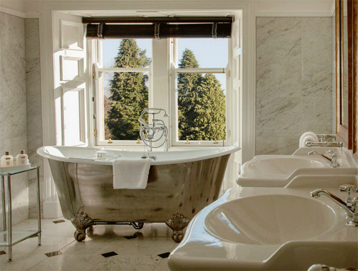 Αυτό που είναι ενδαφέρον σχετικά με τα δωμάτια είναι πως το καθένα από αυτά έχει τη δική του διακόσμηση και το δικό του όνομα. Ο Murray τους έδωσε ονόματα διάσημων βρετανών, όπως είναι ο Sir Alex Ferguson και ο ποιητής Robert Burns. Σε ό,τι αφορά τη διακόσμηση όλα τα παράθυρα βλέπουν προς την εξοχή που εκτείνεται έξω από το ξενοδοχείο, ενώ το μάρμαρο της κάθε μπανιέρας είναι ζωγραφισμένο στο χέρι με χρυσό, ασήμι και χαλκό.