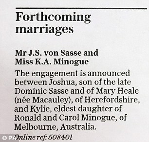 Αν και μόλις μερικούς μήνες σε σχέση με τον κατά πολλά χρόνια νεότερό της σύντροφο, Joshua Sasse, η Αυστραλή τραγουδίστρια αποδέχτηκε την πρόταση γάμου που εκείνος της έκανε, μη βγάζοντας από το χέρι της στιγμή το πανάκριβο μονόπετρό της. Το ζευγάρι μάλιστα ανακοίνωσε τον γάμο του στην εφημερίδα telegraph.