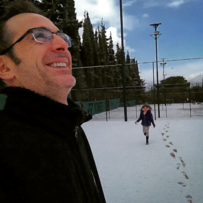 Πρωινή Βόλτα με τον Ατρόμητο Λάμπρο στα χιόνια! Φύγαμε για @toprwino @ant1tv! Χρόνια Πολλά! #kalimera”, έγραψε ο Θέμης Γεωργαντάς που πήρε τον τετράποδο φίλο του στο πλατό!