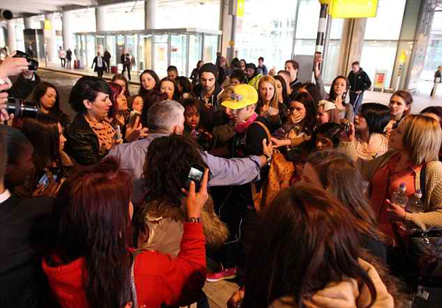 Στο αεροδρόμιο του Χίθροου τον περίμεναν φανατικές θαυμάστριες, οι οποίες έτρεξαν κατά πάνω του, τον περικύκλωσαν, έκλαιγαν με αναφιλητά και του κατέβασαν μέχρι και τα παντελόνια, στην προσπάθειά τους να αγγίξουν από κοντά το ίνδαλμά τους.