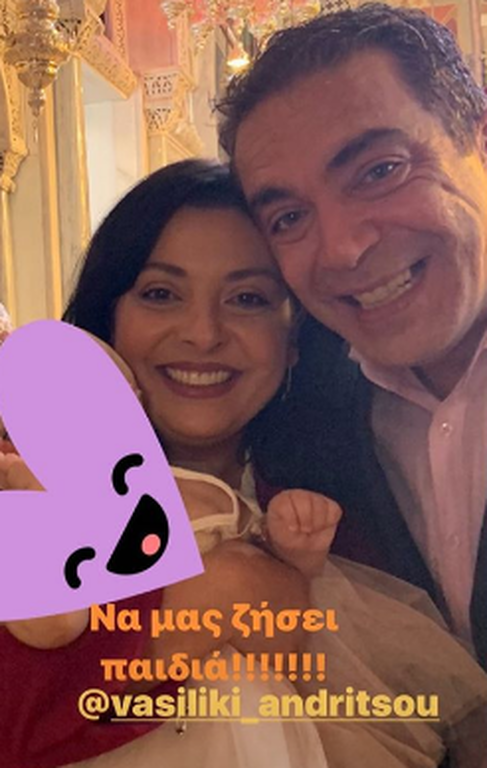 Την οκτώ μηνών κόρη τους βάφτισαν την Κυριακή η Βασιλική Ανδρίτσου και ο σύζυγός της Νίκος Συμεωνίδης.