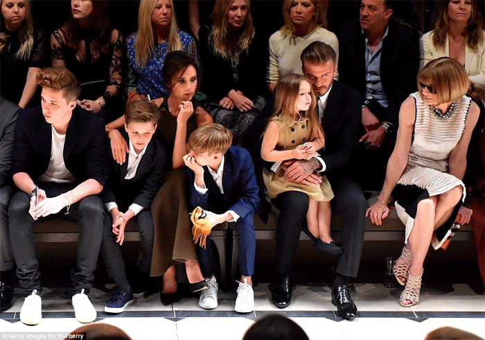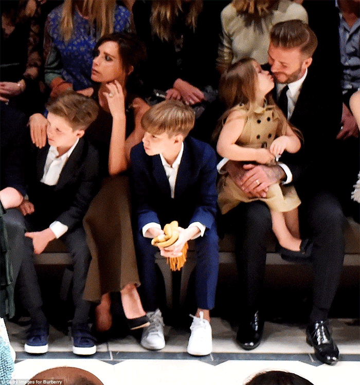 Η σχεδιάστρια παρευρέθηκε στην επίδειξη μαζί με τον σύζυγό της David και όλα τους τα παιδιά. Παρόλα αυτά, τα βλέμματα όλων συγκέντρωσε η πανέμορφη κόρη τους, Harper, καθώς και ο 16χρονος γιος τους Brooklyn, που κυριολεκτικά φωτογραφήθηκε με τους πάντες στο πάρτι μετά το show.