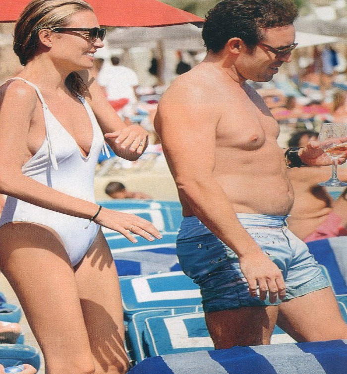 Το ζευγάρι κολύμπησε και χάρηκε ο ένας τα χάδια του άλλου, αδιαφορώντας για τους υπόλοιπους θαμώνες που τους αναγνώρισαν αμέσως. Η Βίκυ τρεις μήνες μετά τη γέννηση της κόρης της, έχει χάσει όλα τα κιλά της εγκυμοσύνης και τους εντυπωσίασε όλους με τη σιλουέτα της, που φρόντισε να αναδείξει με το λευκό ολόσωμο μαγιό.