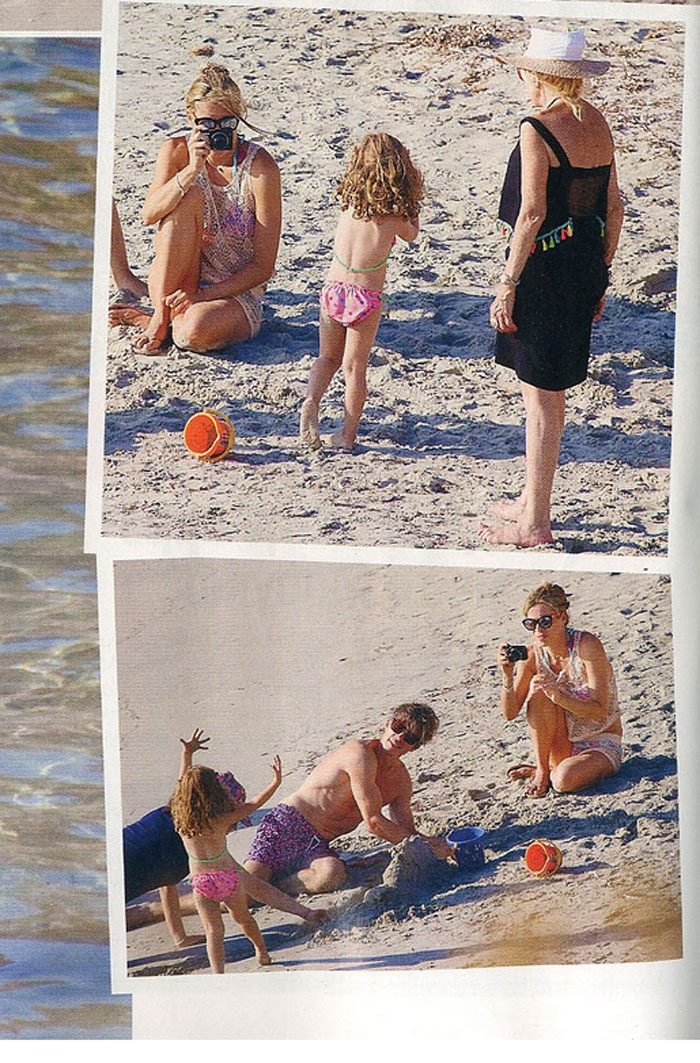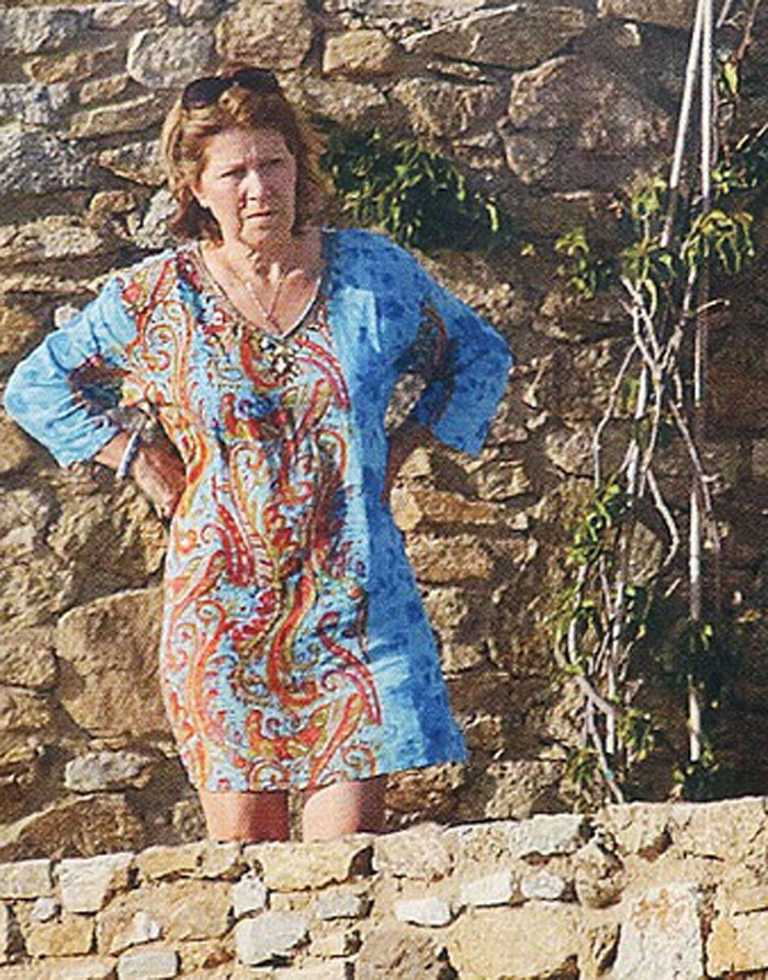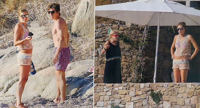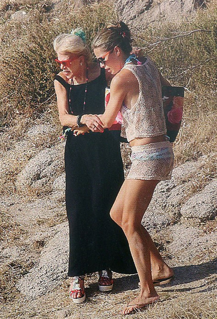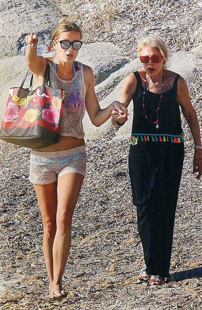 Η νύφη της και μητέρα των δύο εγγονιών της, δεν της αφήνει το χέρι, βοηθώντας την να κατέβει ένα δύσβατο μονοπάτι που οδηγεί στην παραλία του Άγιου Σώστη στη Μύκονο.