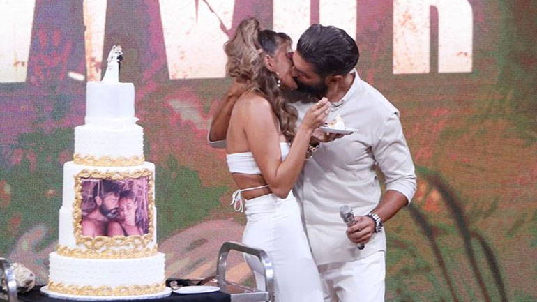 Την ώρα λοιπόν που εξηγούσαν πώς ξεκίνησε το love story μεταξύ τους εμφανίστηκε στο πλατό ο περσινός παίκτης του Survivor, Κώστας Παπαδόπουλος, με μία τεράστια γαμήλια τούρτα και το ζευγάρι έσπευσε να την κόψει.